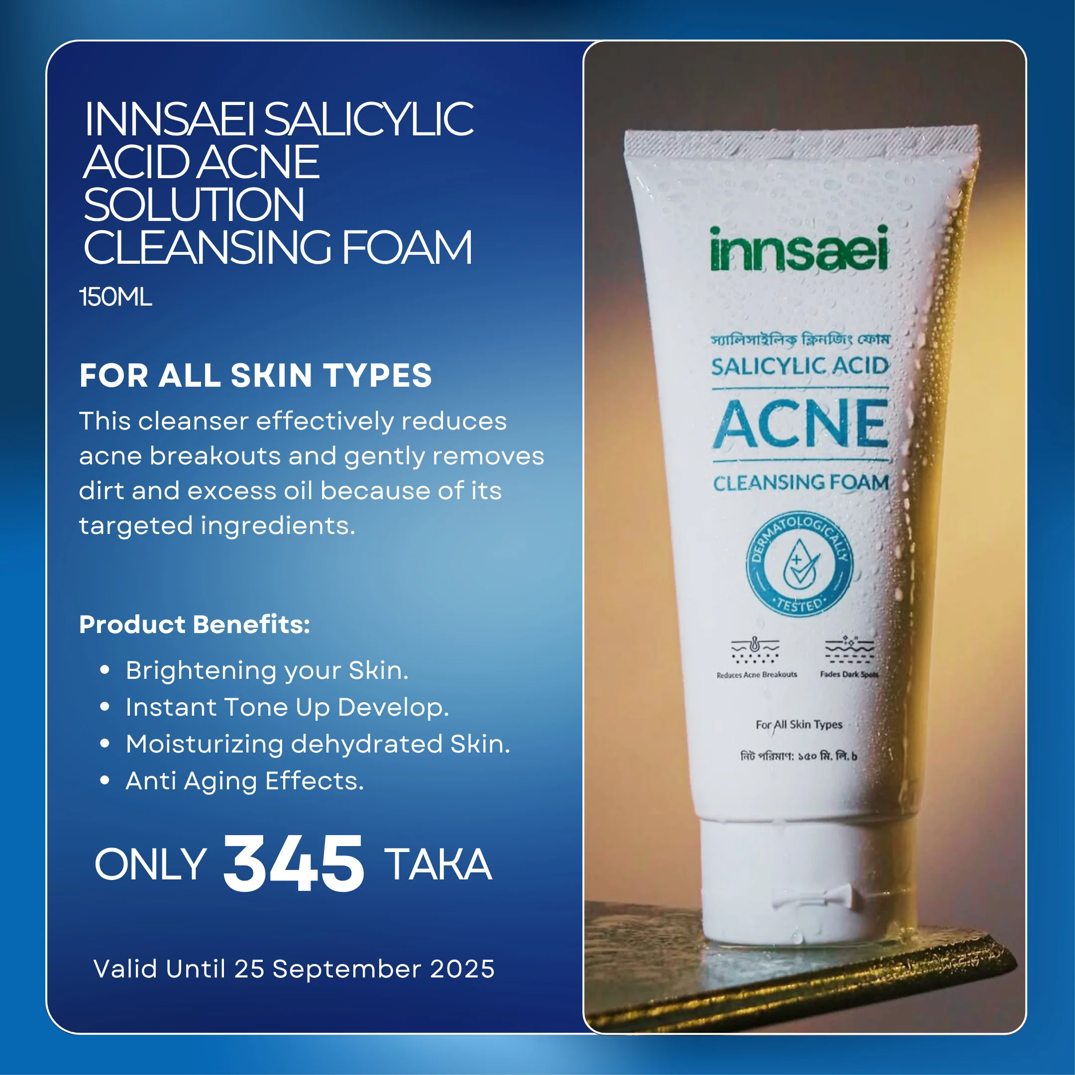 Original price was: 270৳ .260৳ Current price is: 260৳ .Innsaei Salicylic Acid Acne Solution Cleansing Foam 150ml